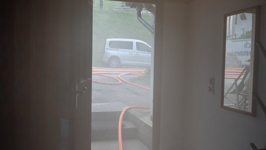 Der erste Einsatzabschnitt erhielt den Auftrag, eine Brandausbreitung auf das benachbarte Haupthaus zu verhindern und die vermissten Personen mittels schweren Atemschutz zu retten.