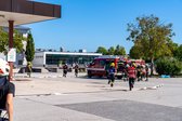 Bezirksfeuerwehrkommandant Helmut Berc begrüßte bei strahlendem Sonnenschein den ersten Turnus am Gelände der Straßenmeisterei Kremsmünster.