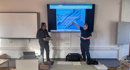 Der Einsatzleiter und seine Einsatzabschnittsleiter waren gefordert, die 24 alarmierten Einheiten zu koordinieren und zu führen sowie auf die von der Übungsleitung eingespielten Lageänderungen zu reagieren und unter Zeitdruck die richtigen Entscheidungen zu treffen.