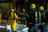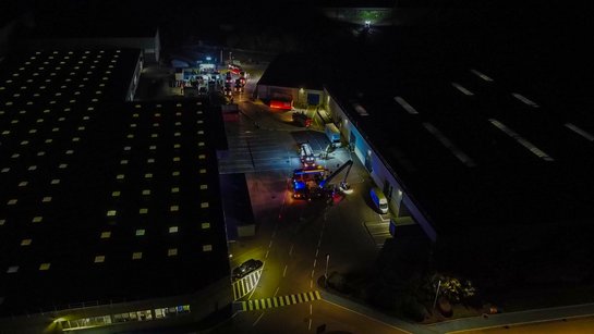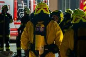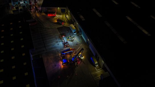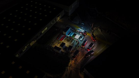Produktionsbereich. Unter schwerem Atemschutz drangen die Einsatzkräfte in den