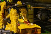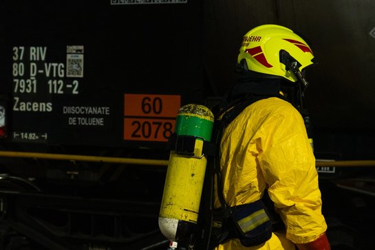spezieller Schutzanzüge durchgeführt, um den Eigenschutz der Einsatzkräfte zu